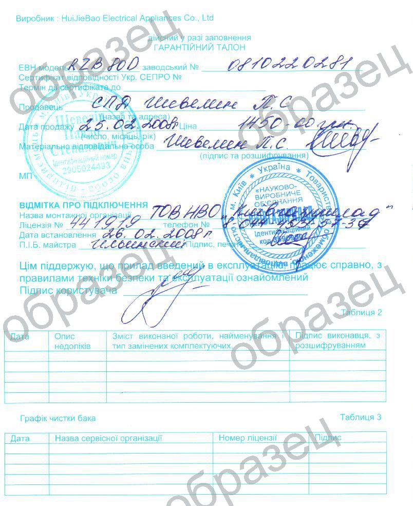 Сервисное обслуживание и ремонт возможны только при условии правильно заполненного гарантийного талона
